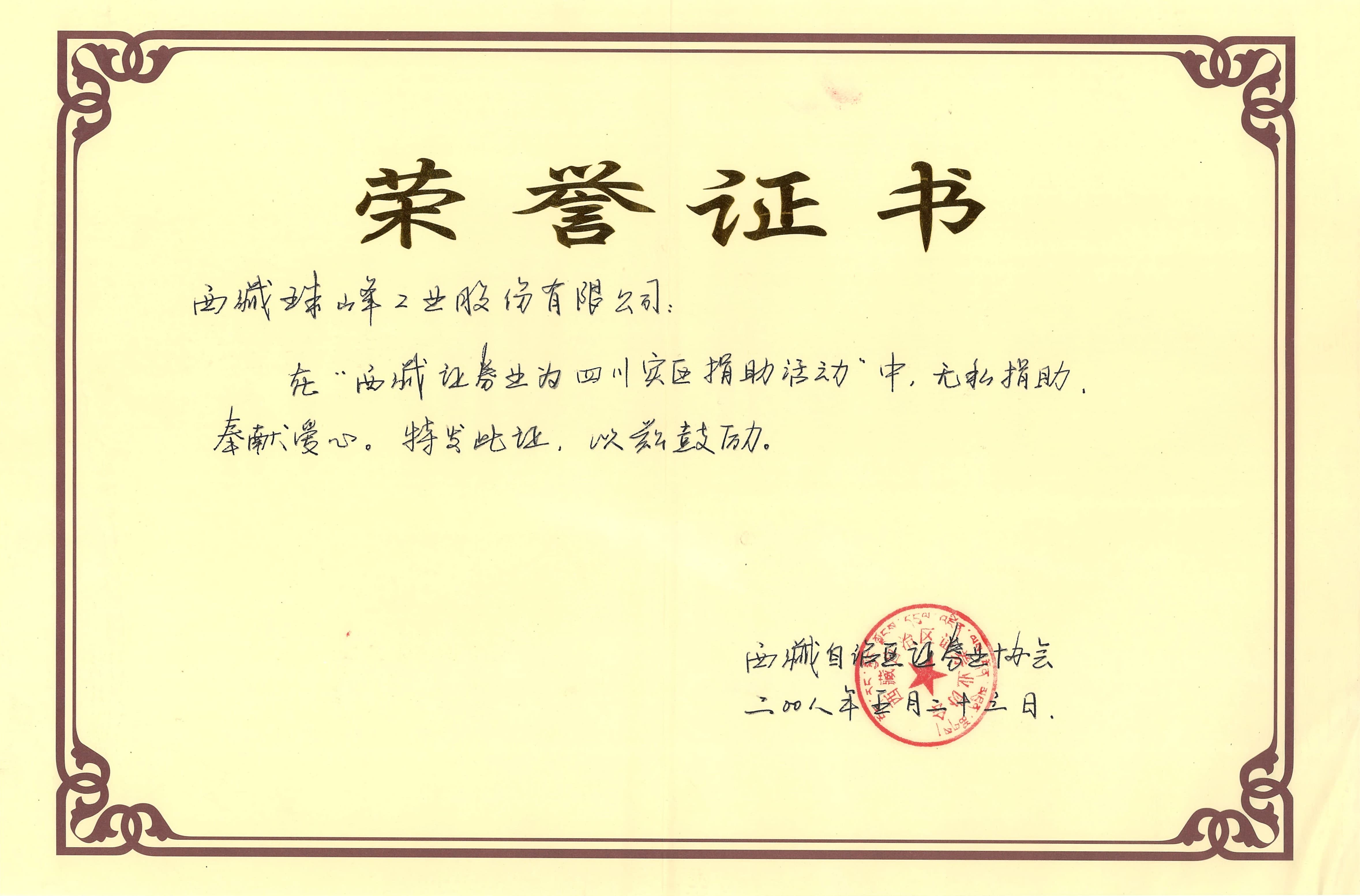 四川災(zāi)區(qū)捐助活動(dòng)榮譽(yù)證書(shū)